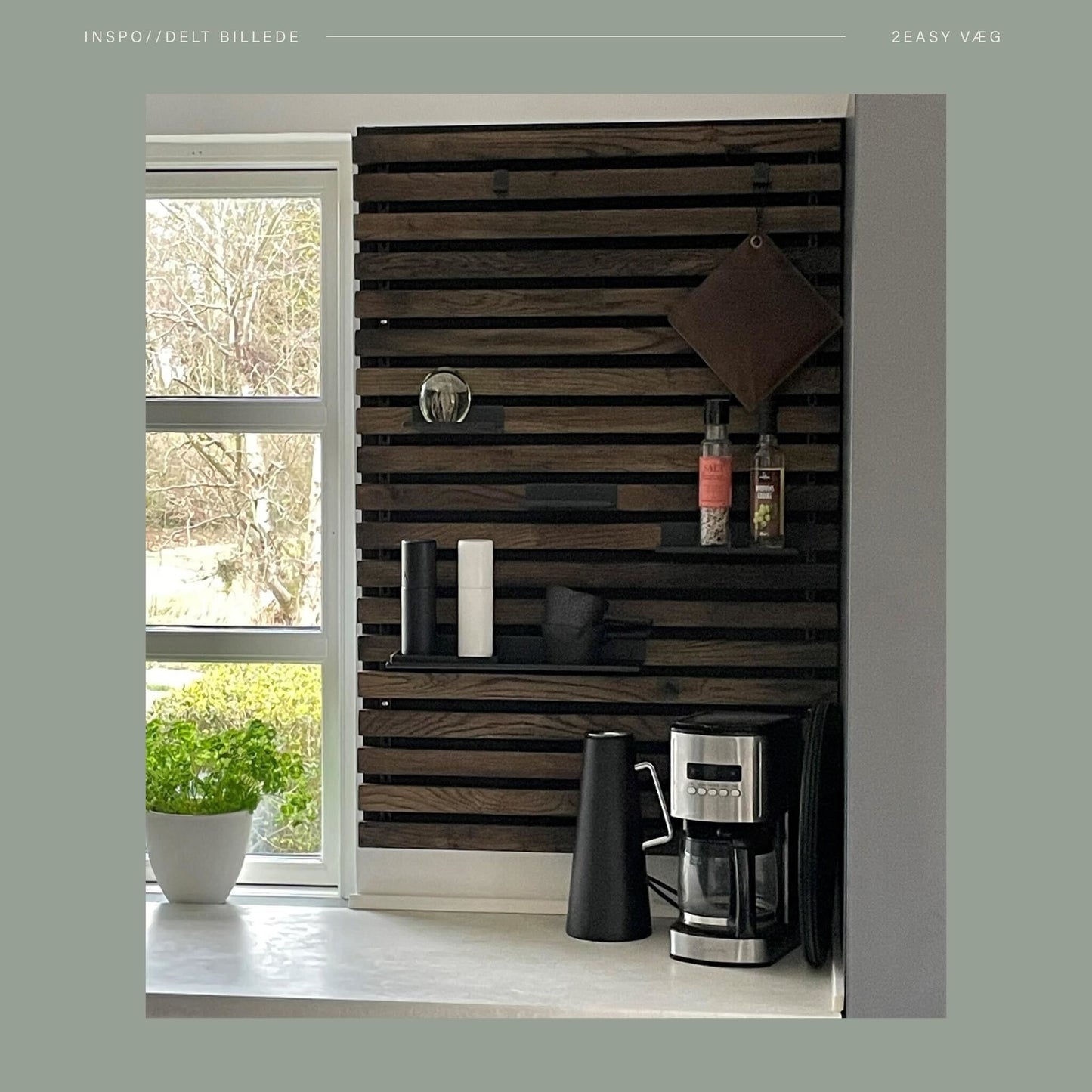 Den fine 2Easy væg med vægsupport i sort giver et væld af muligheder til organisering af hjemmets ejendele. Væggen med en masse ophængs løsninger kan findes i 3 forskellige oliebehandlinger med sort vægsupport.