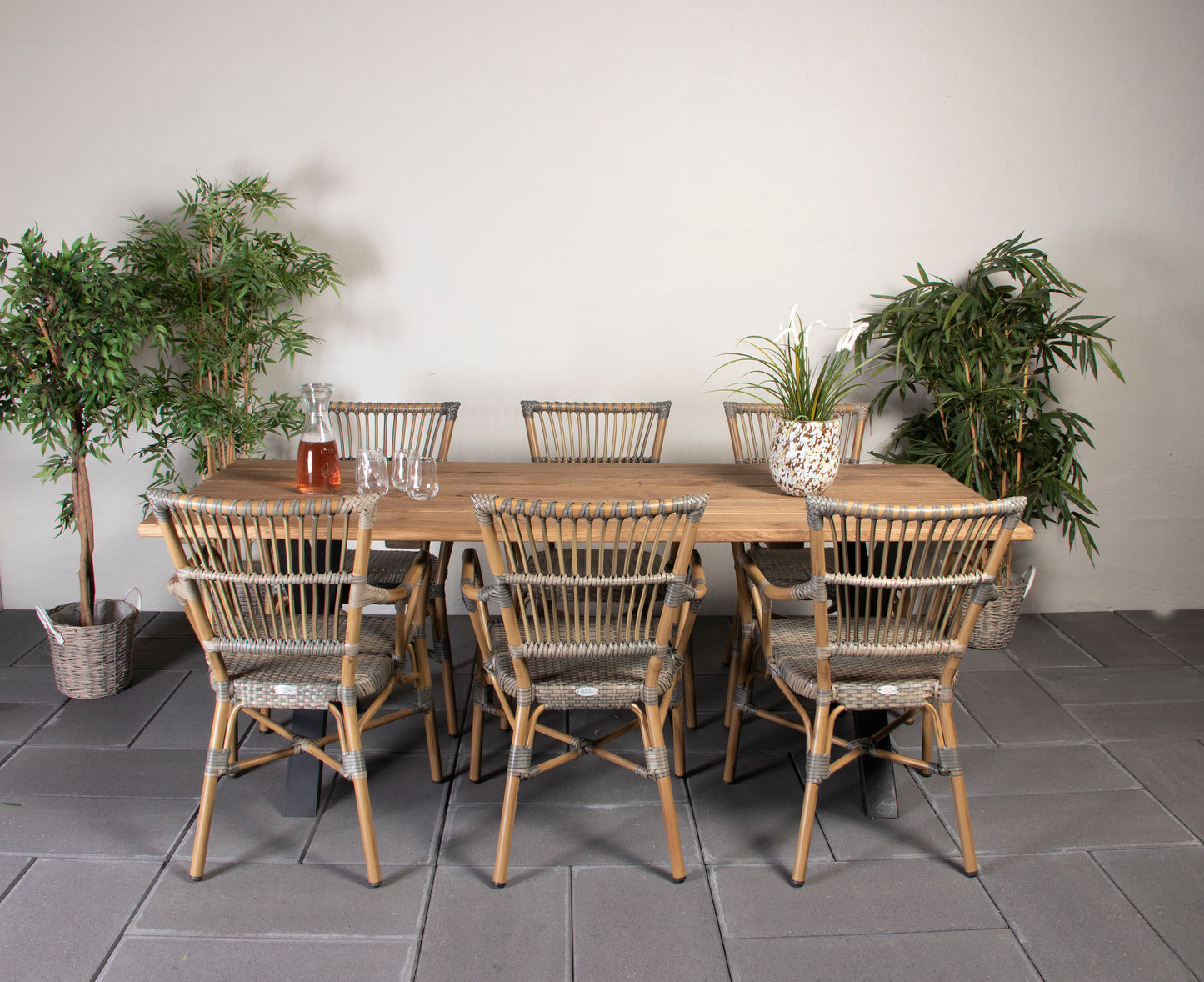 Indtag din udendørs oase med elegance ved at vælge Aaron havestolen. Smukt designet og komfortabel med et aluminiumsstel med coated bamboo finish og sæde/ryg i polyrattan kombinerer Aaron komfort, holdbarhed og design. Tag plads med stil og nyd udendørslivet med Aaron.